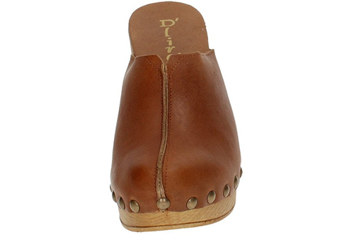 Sandalias de moda de piel con tacón y plataforma de madera fabricadas en España por Dliro. Zuecos sandalias de primera calidad para mujer. Zuecos de madera con tapa y filips de goma.
