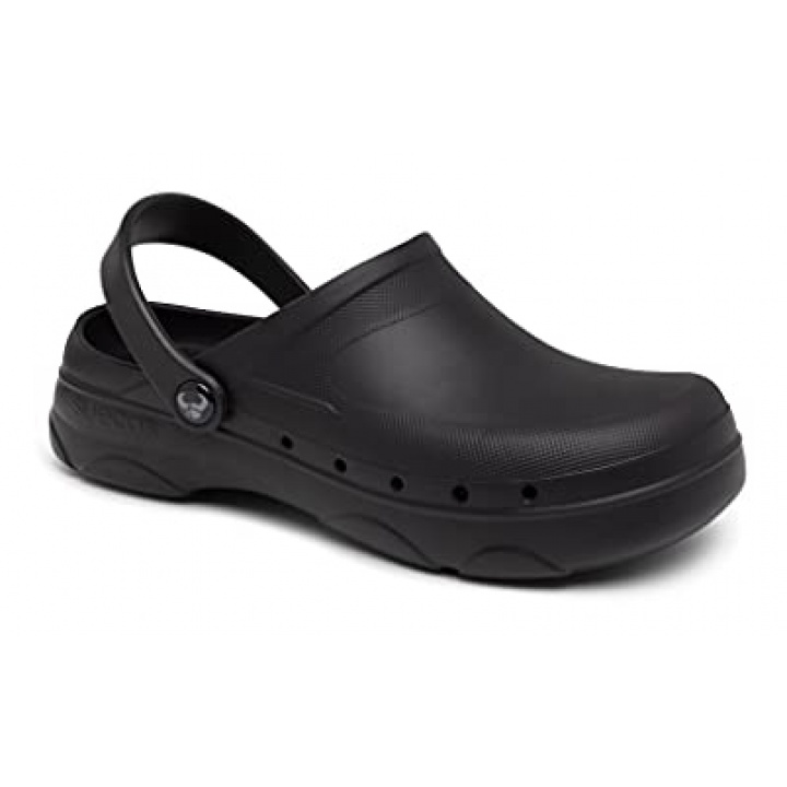 Los zuecos Vidar son un calzado profesional ergonómico y antideslizante ideal para trabajar durante horas sin perder la comodidad. Su diseño combina las propiedades de la EVA y la goma para aumentar las cualidades antideslizantes y la resistencia al desgaste. Además, ofrece una gran capacidad de adaptación a cada pie y un sistema de absorción de impactos. Estos zuecos disponen de unos orificios en la parte baja para aumentar la ventilación, una protección extra en la parte trasera y una tira de agarre que proporciona una sujeción óptima. Por último, cuenta con un relieve en la plantilla que mejora el flujo y la circulación sanguínea.